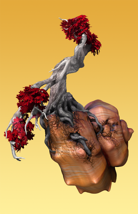 As you can see, I decided the shell base was too weak and not impactful enough in the concept art. Therefore, I scaled it up when I did my low-poly version and made it more interactive in continuing the curve of the tree.
